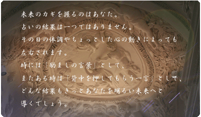 念視と未来予知でどんな悩み・苦しみも解決します。 統計学的に「こんな傾向の運勢です」という占いとは違います。 一人一人全て異なる固有の運気と未来、 周りの『影響を与える全て』を総合的に鑑定します。 悩み・苦しみがあるなら、わたしを頼ってください。 どんなに苦しい状況でも、必ず幸せになる道が見つかります